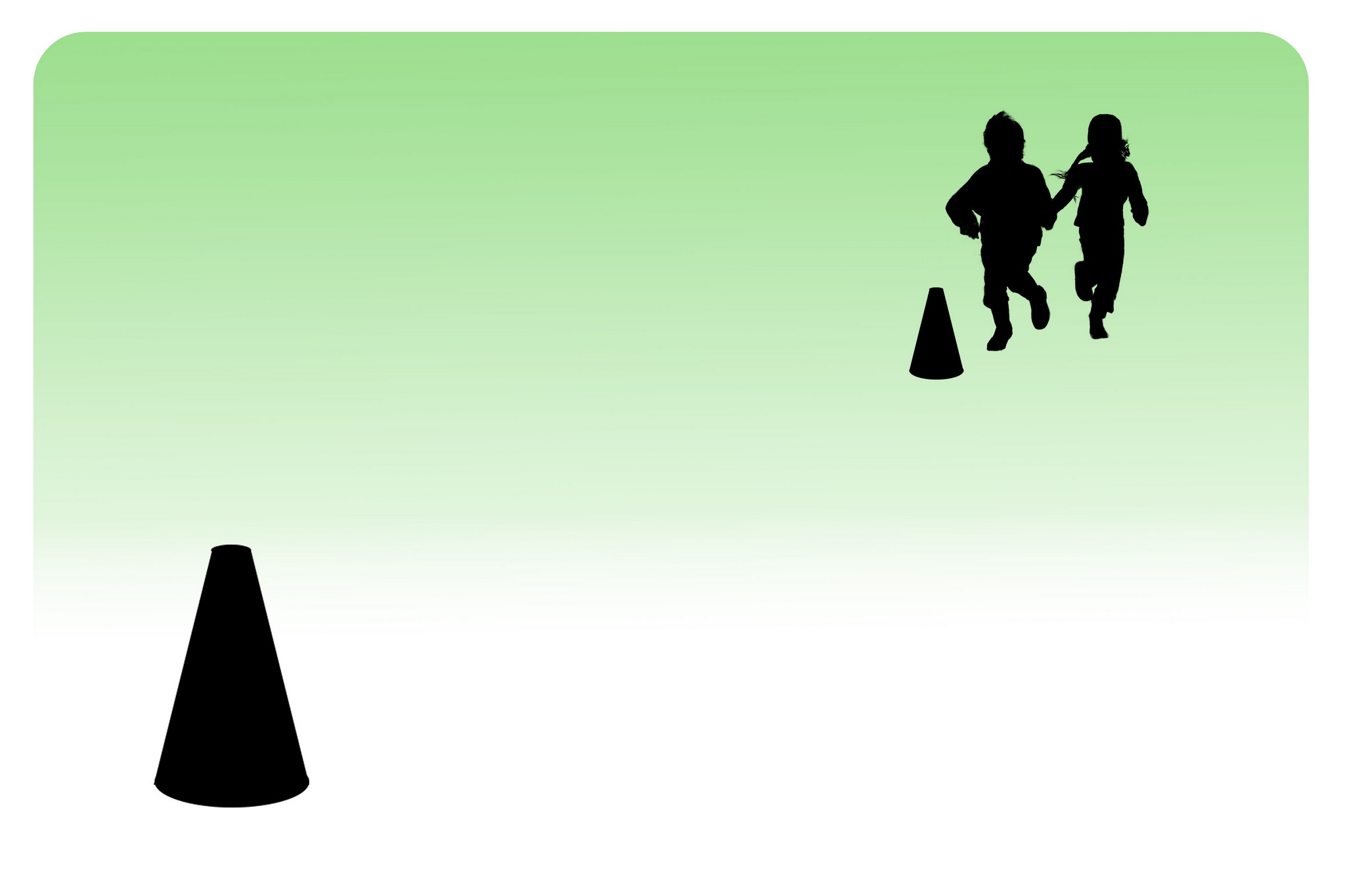 The race is simple. First player in the team runs to the furthest cone, goes around it and runs back again, running around the cone, but this time they collect the next player in the team. Holding hands they run to the top of the course and back again. This time collecting the third member of the team. This continues adding a new member of the team and running holding hands until the final member of the team is added, when they run a single last circuit as a whole team holding hands.